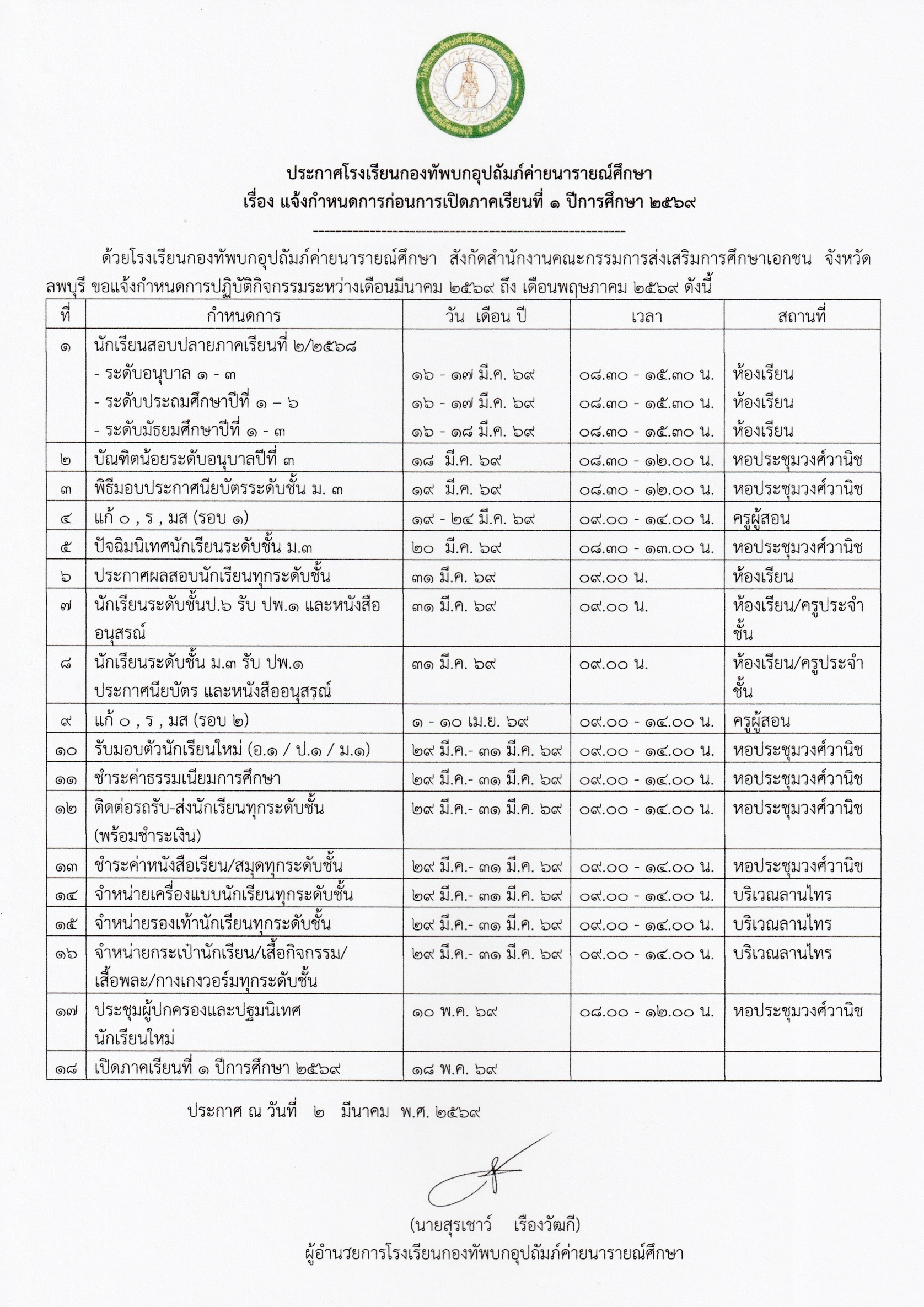 กำหนดการก่อนเปิดภาคเรียนที่ 1 ปีการศึกษา 2569